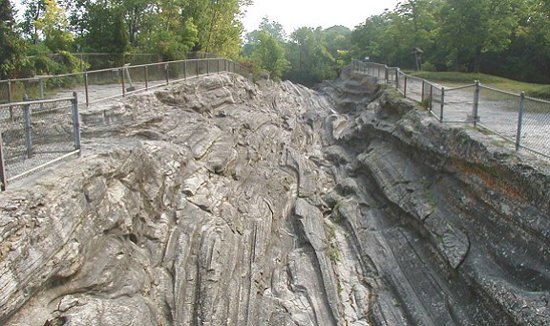 Located adjacent to the Kelleys Island State Park Campground and Public Beach on the island north side, the Glacial Grooves are the finest example of glacial scouring an scoring in North America and probably the world. The example shown here at about 430 foot in length, 15 foot deep, 35 foot wide and is only a small sample of the grooves that at one time extended into the lake.